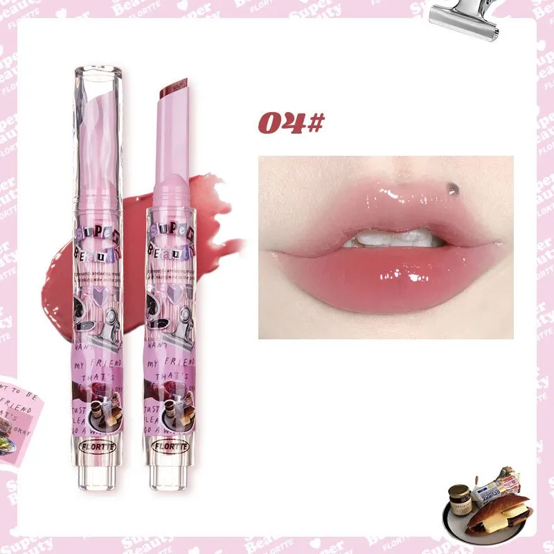 The Flortte I am super beauty jelly lipstick is a moisturizing jelly lipstick with a shiny finish.